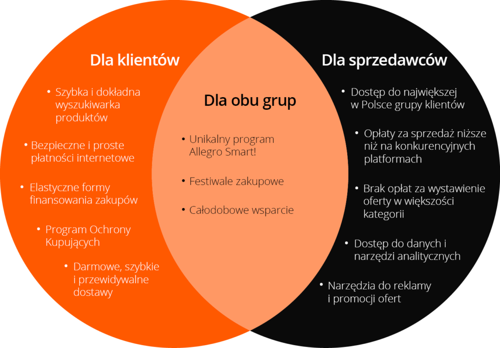 udostępniając sprzedawcom szereg narzędzi i usług takich jak m.in. program Allegro Smart!, narzędzia do monitorowania sprzedaży, system płatności internetowych czy szereg rozwiązań logistycznych.